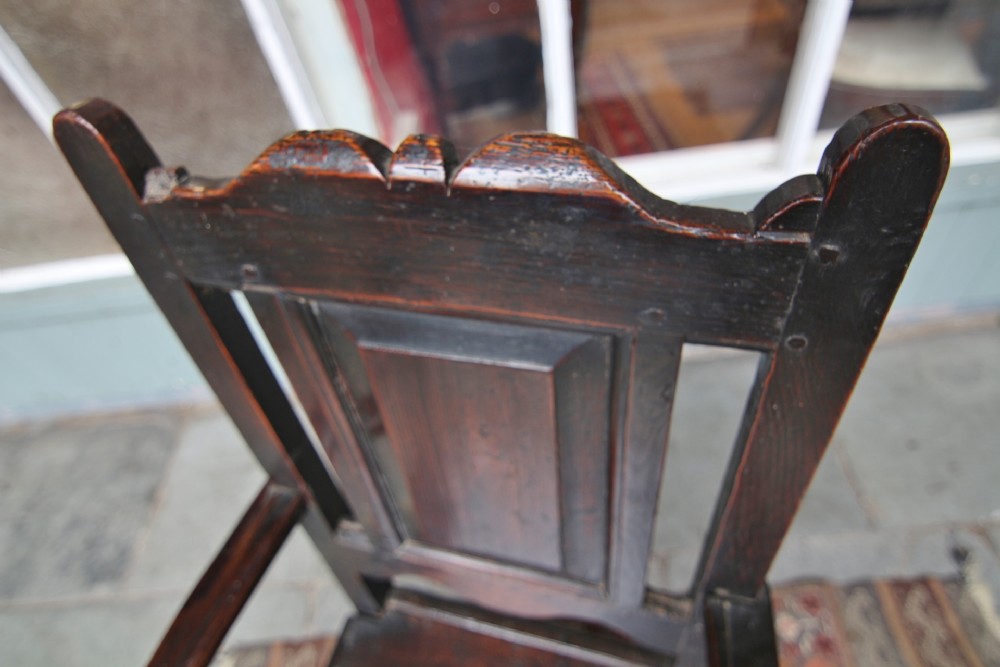 UNUSUAL LATE 17TH CENTURY WELSH OAK WAINSCOT TYPE ARMCHAIR