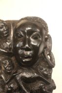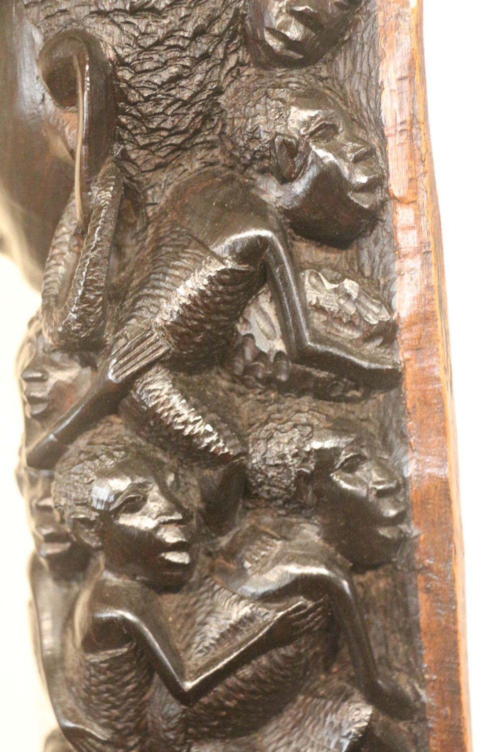 AN IMPRESSIVE LARGE 19TH/EARLY 20TH CENTURY EBONY CARVING; CARVED FROM THE SOLID EBONY TREEDEPICTING FIGURES TOGETHER. ORIGINAL BARK REMAINING TO THE REAR AND BASE. GENERAL USAGE WEAR AS PER PHOTOS, LOVELY COLOUR & PATINATION. BOUGHT PRIVATELY