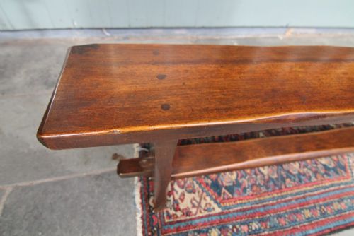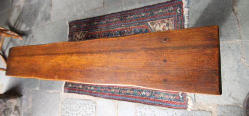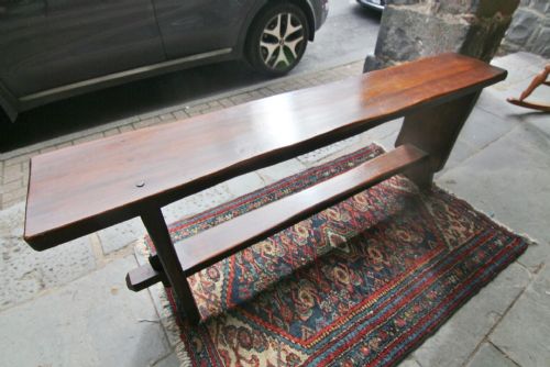 A GOOD SOLID CLEAN 19TH CENTURY PROVINCIAL FRUITWOOD BENCH; WITH POLISHED PLANK SEATWITH ADZED SUPPORTS AND CROSS-STRETCHER WITH PEGS. WELL POLISHED COLOUR AND PATINATION, GENERAL LIGHT USAGE WEAR AS PER PHOTOS, OVERALL STRUCTURALLY SOUND NO WORM. BOUGHT PRIVATELY.