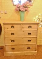 19TH CENTURY CAMPAIGN STYLE PINE CHEST OF 5 DRAWERS