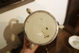A CHARMING 19TH CENTURY HALLMARKED SILVER RIMMED HARVESTING CUP; TOP RIM SILVER WITH LURCHER SHAPED TRIO OF HANDLES, ONE WITH OLD STABLE REPAIR, SURROUNDING THE CUP A HUNTING SEEN WITH RAISED PATTERN SHOWING HOUNDS IN HUNT. THE BASE WITH SILVER RIM. GENERAL USAGE WEAR AS PER PHOTOS. BOUGHT PRIVATELY.