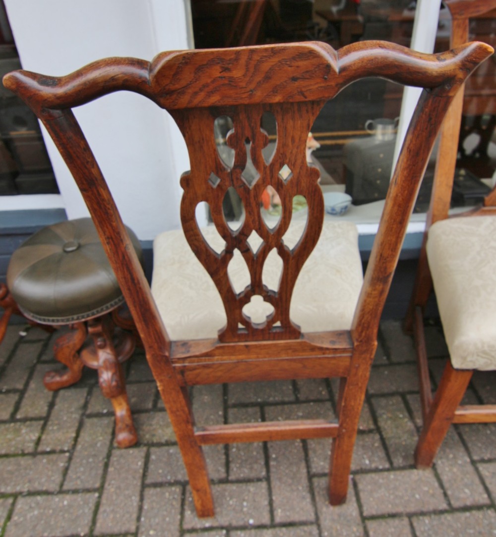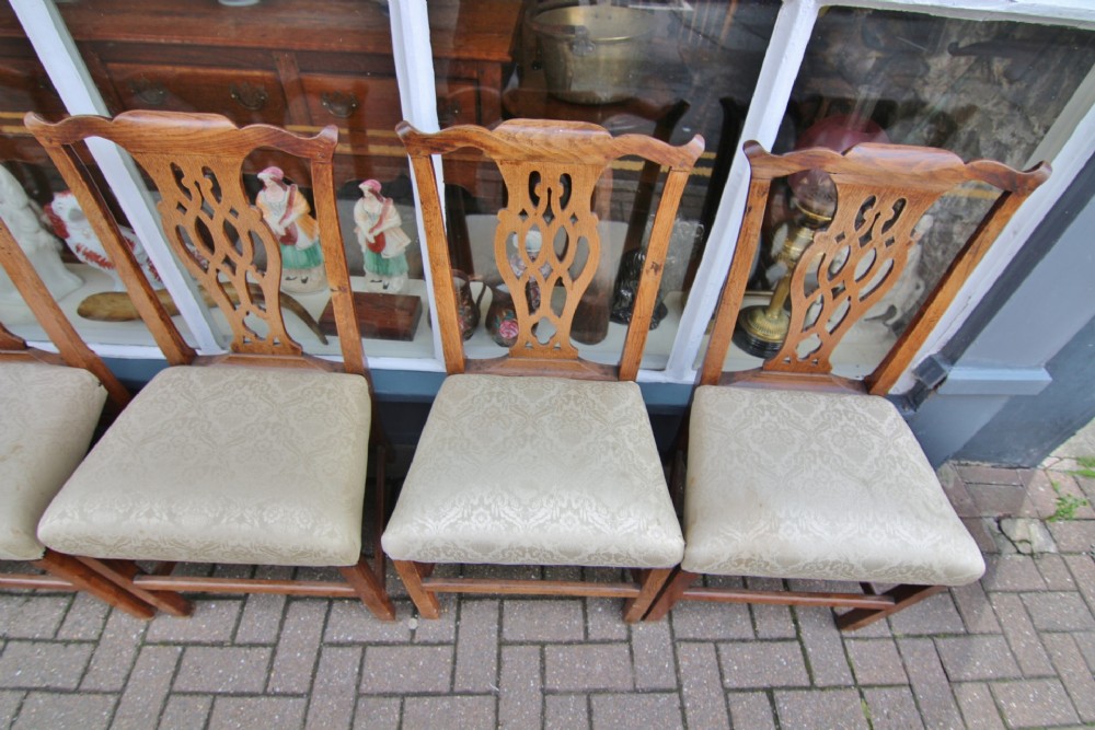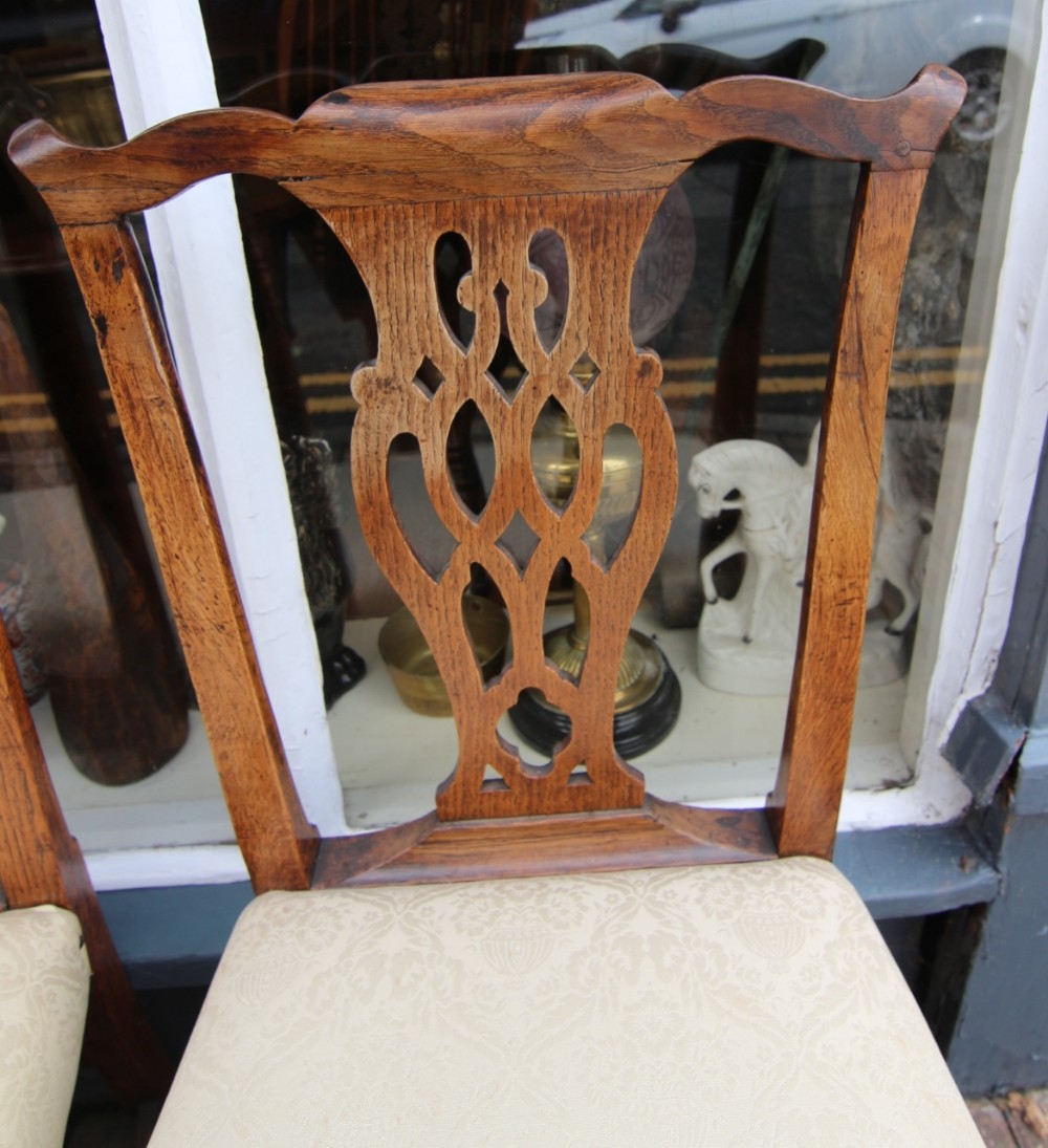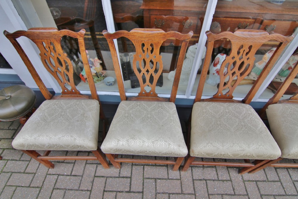 GOOD SET OF 6 GOLDEN OAK GEORGIAN COUNTRY CHIPPENDALE CHAIRS