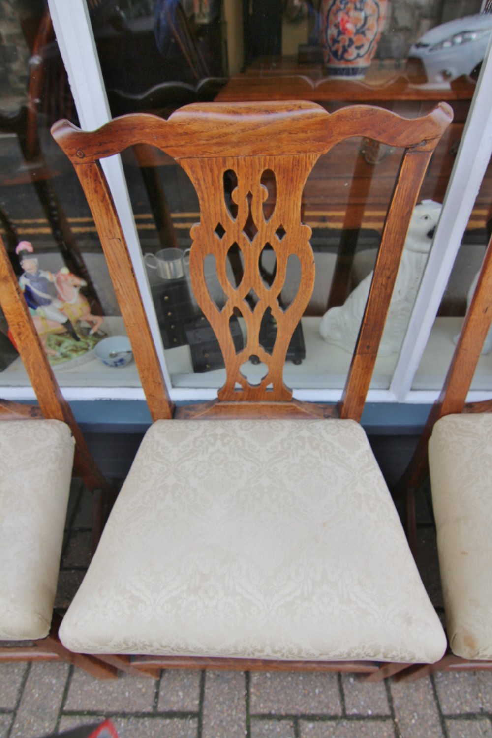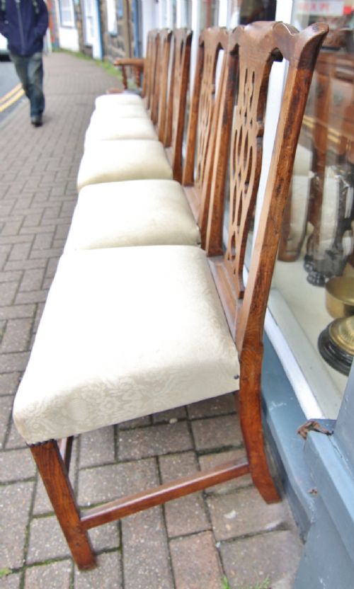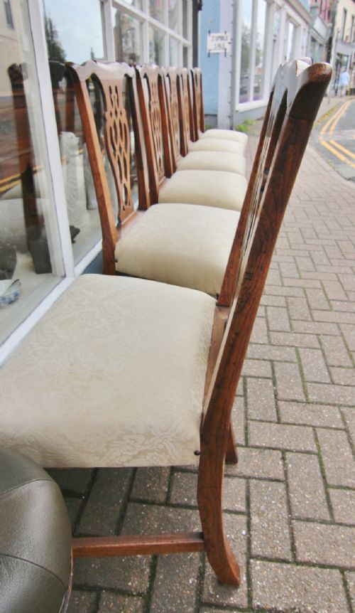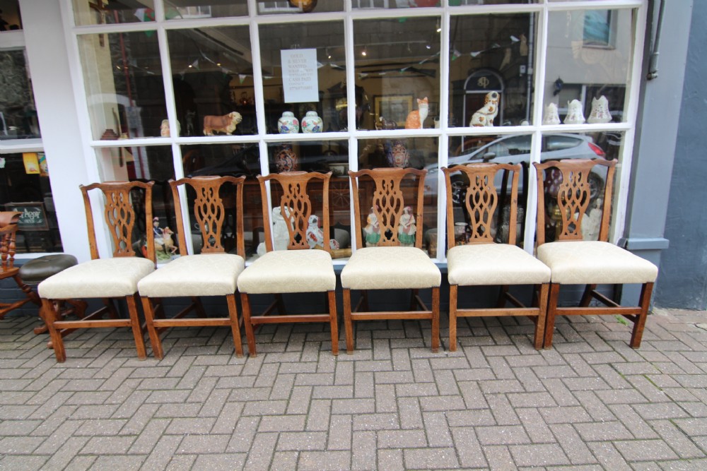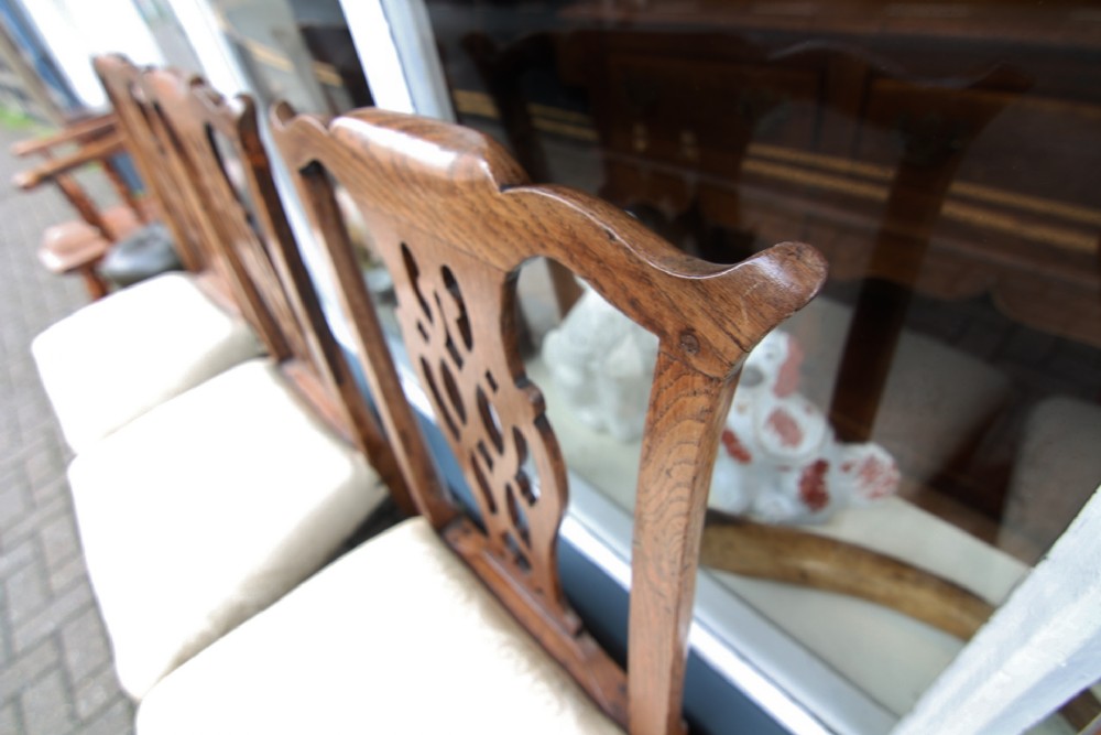 GOOD SET OF 6 GOLDEN OAK GEORGIAN COUNTRY CHIPPENDALE CHAIRS
