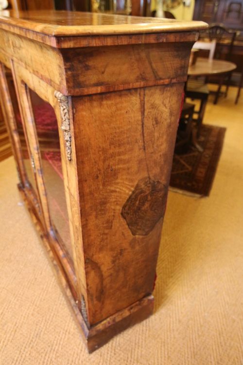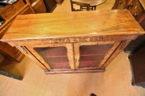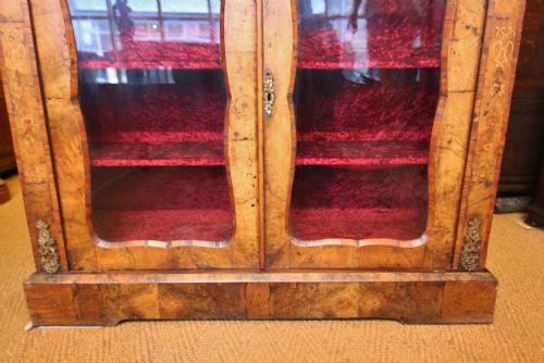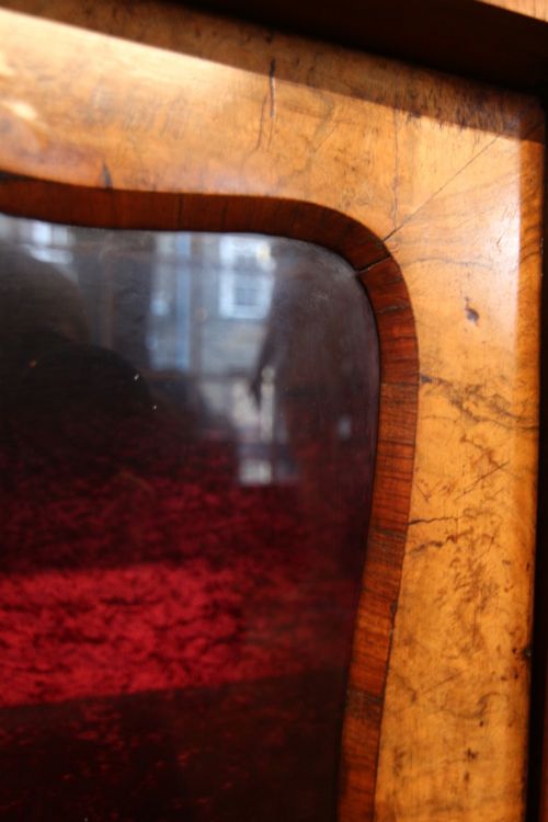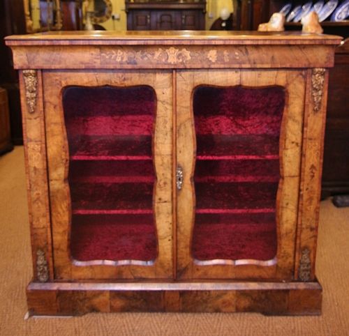 19TH CENTURY COMPACT 2 DOOR BURR WALNUT INLAID DISPLAY CABINET