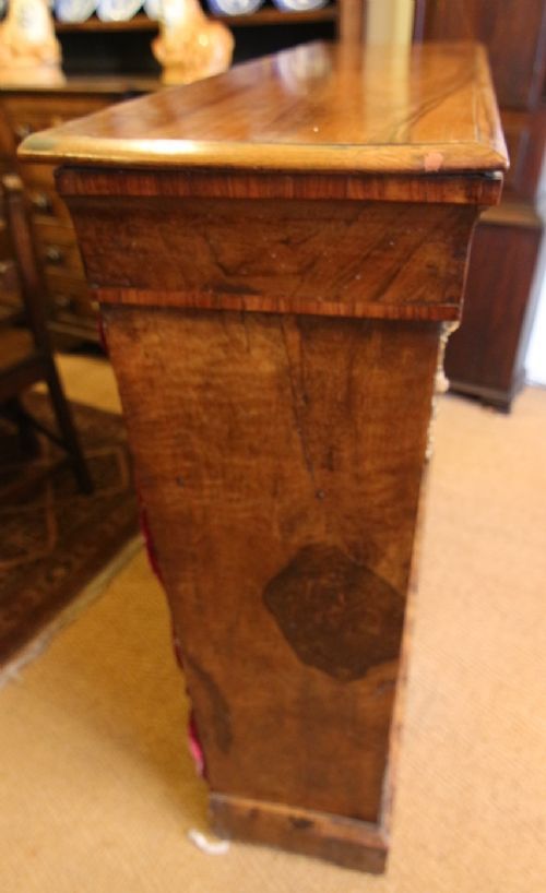 A HANDSOME LITTLE 2 DOOR CREDENZA; WITH SOLID POLISHED WALNUT TOP ABOVE MARQUETRY INLAY, FINE CAST GILT APPLIED BRASS CORBELS. UNUSUAL SHAPED DOORS REVEALING TWO SHELF INTERIOR WITH LATER CRIMSON VELVET. BURR WALNUT SIDES AND SOLID BACK , STOOD ON SHAPED SOLID P[LINTH. GENERAL USAGE WEAR AS PER PHOTOS, OVERALL CLEAN, GOOD COLOUR AND PATINATION. BOUGHT PRIVATELY