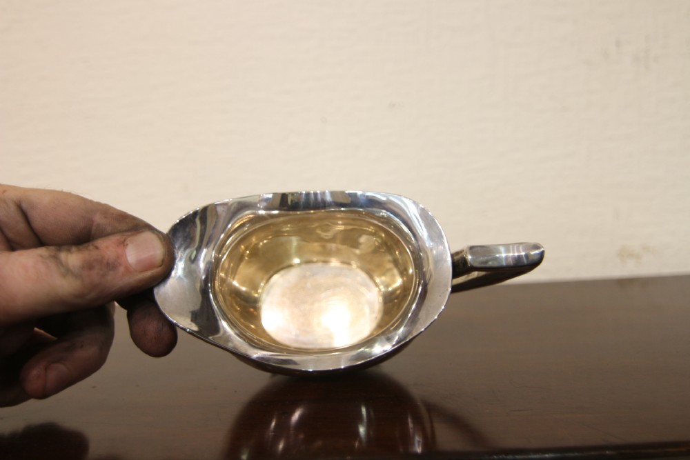A FINE EDWARDIAN STERLING SILVER CREAMER JUG; BIRMINGHAM HALLMARKS EDWARDIAN WITH SILVER HANDLE . OVERALL EXCELLENT CLEAN CONDITION 172G TOTAL APROX BIRMINGHAM 'N' J C LTD.