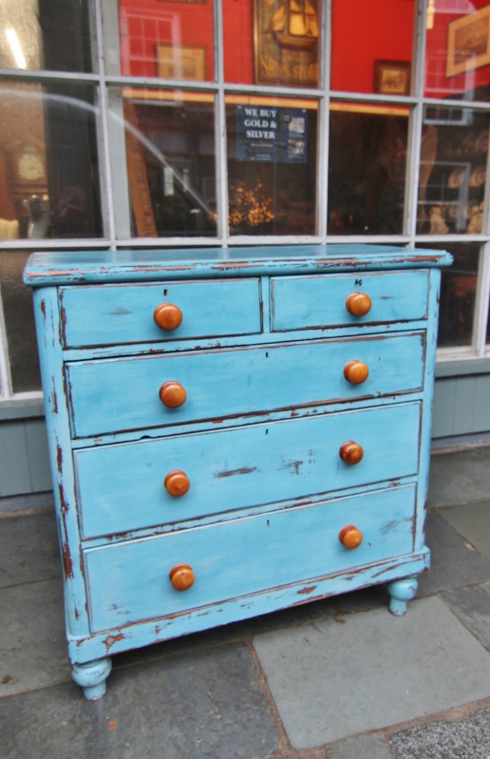 19TH CENTURY PAINTED FIVE DRAWER CHEST OF DRAWERS