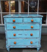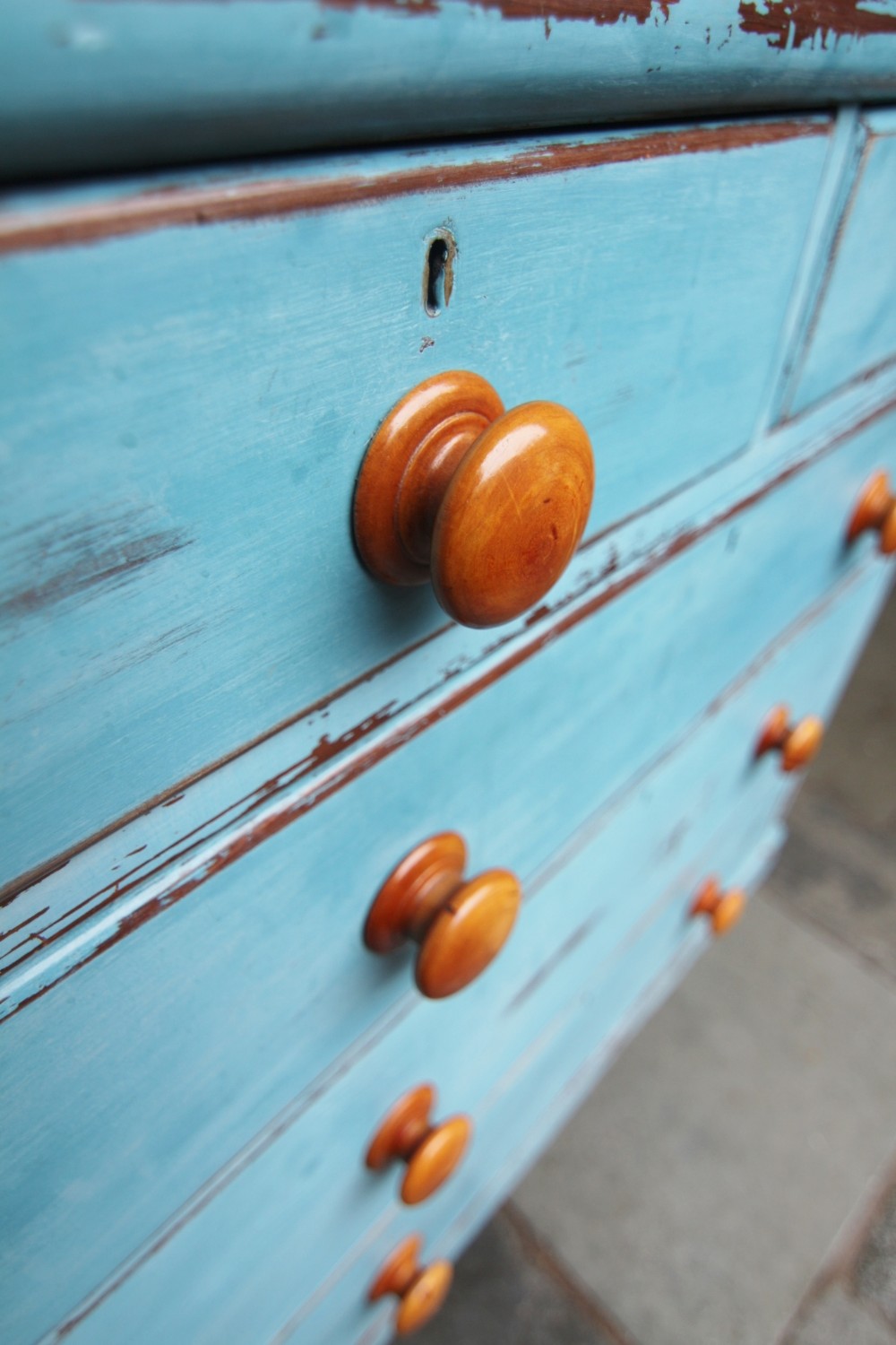 A LOVELY CLEAN LITTLE LATE 19TH CENTURY PINE & MAHOGANY CHEST; SINGLE PIECE TOP WITH ROUNDED MOULDING ABOVE TWO SHORT OVER THREE LONG DOVETAILED GRADUATED DRAWERS. BEAUTIFUL BOXWOOD POLISHED HANDLES, SOLID TIMBER SIDES AND BACK. STOOD ON TURNED BUN FEET. STRUCTURALLY SOUND, GENERAL WEAR COMPOSITE OF AGE AS PER PHOTOS. CLEAN INTERIOR READY TO USE. BOUGHT PRIVATELY