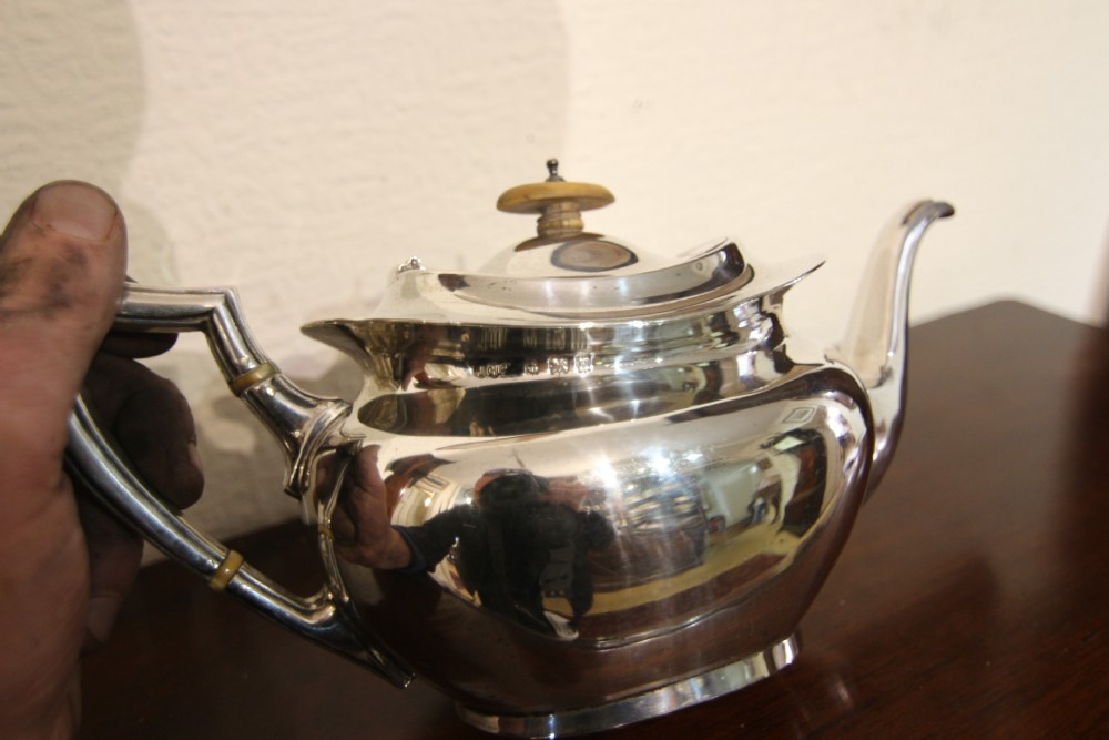 A LARGE EDWARDIAN SILVER TEAPOT; BIRMINGHAM HALLMARKS, SUBTLE CURVED SHAPE WITH SOLID HANDLE AND TOP, IN GOOD OVERALL CONDITION 590G TOTAL APROX. BOUGHT PRIVATELY