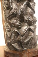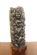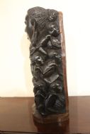 AN IMPRESSIVE LARGE 19TH/EARLY 20TH CENTURY EBONY CARVING; CARVED FROM THE SOLID EBONY TREEDEPICTING FIGURES TOGETHER. ORIGINAL BARK REMAINING TO THE REAR AND BASE. GENERAL USAGE WEAR AS PER PHOTOS, LOVELY COLOUR & PATINATION. BOUGHT PRIVATELY