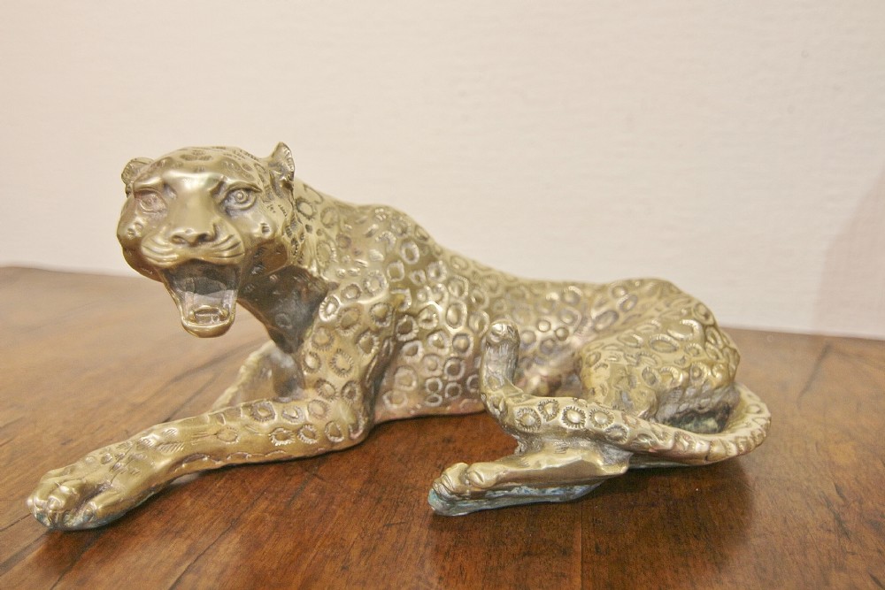 LARGE SOLID BRASS / BRONZE ART DECO LEOPARD